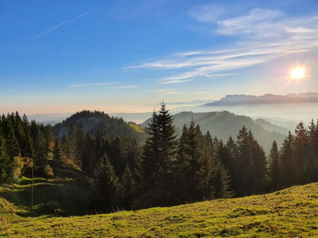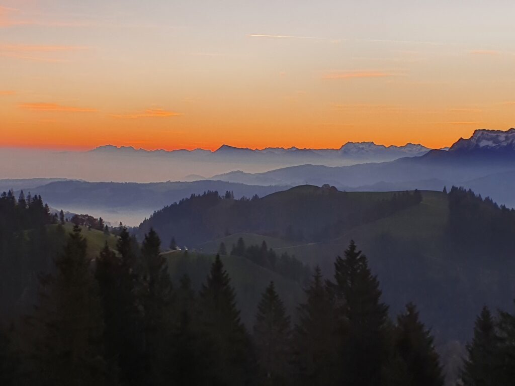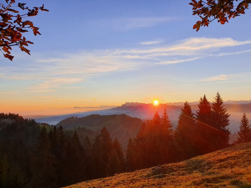 Welch ein Genuss! in den nächsten Tagen lohnt sich etwas früher aufstehen. Herrliche Sonnenaufgänge erwarten uns auf dem Napf, während das Mittelland sich noch im Nebel versteckt.