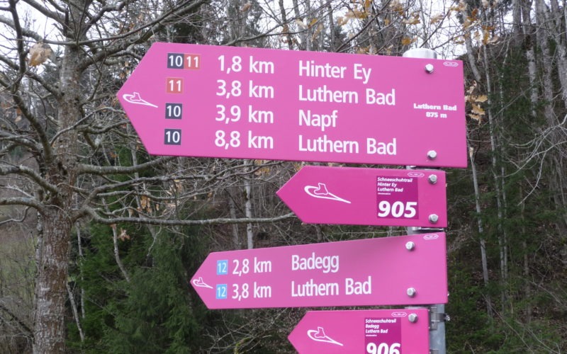 Noch lässt der Winter auf sich warten… Die Schneeschuhtrails in Luthern Bad sind jedoch bereit für den Winter.